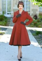 ”Step back in time, wrapped in style!” Met deze swing jas maak je gegarandeerd een statement, waar je ook gaat. Ze heeft een elegant en vrouwelijk swingmodel met een klassieke reverskraag en grote stoffen knopen. Uitgevoerd in een stevige maar soepele stofmix met een vleugje viscose (zonder stretch) in een warme roestbruine kleur, die je wintergarderobe meteen een chique, retro boost geeft. Stijlvol, speels en onweerstaanbaar! * Swing stijl * Revers kraag * Knopenrij  * Volledig gevoerd * Voorzien van zakken! * Valt over de knie bij een lengte van 1,70 m