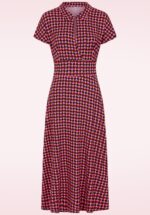 “Cute, comfy & blooming pretty.” Deze comfortabele midi-jurk in zwart met rode bloemetjesprint is pure vintage sweetness. Ze heeft een elegante V-halslijn met een geplooide buste, terwijl subtiele kanten biesjes een romantische, retro-geïnspireerde touch toevoegen. Gemaakt van een zachte, stretchy biologische katoenmix, een milieuvriendelijk alternatief dat extra fijn draagt. * Midi-jurk * V-halslijn * Geplooide buste * Kanten biesjes * Afneembaar striklint * Valt bij een lengte van 1,70 m tot op de kuit