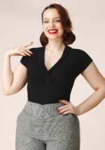 Zie jij alle fantastische combi’s met deze top al voor je?! De diamantvormige halslijn is afgewerkt met een kanten biesje en zorgt ervoor dat je een prachtig decolleté laat zien. Uitgevoerd in een stretchy, zwarte bio katoenmix voor een mooie aansluitende pasvorm. Waar je haar ook mee combineert, ze zal alle outfits omtoveren in een prachtplaatje! * Kanten biesje * Lang genoeg om op een normale heupbroek te dragen