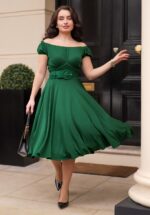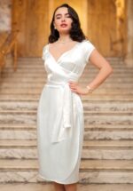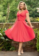 “Old Hollywood called… they want their glamour back, but I’m keeping it.” De inspiratie van onze in-house designers dit seizoen was ”Bright Dreams in Neon Lights”. Maar het blijft niet bij dromen want deze collectie is als een droom die ook daadwerkelijk uitkomt! Deze oogverblindende swing stunner is uitgevoerd in een gladde, stretchy avondblauwe stof met corrigerende bengaline shapewear… “Some dresses flirt. This one seduces… politely, of course.” * Swing stijl * Sweetheart halslijn met plooitjes die de buste omlijst * 3/4 mouwtjes * Bra strap holders zodat je bh bandjes niet gaan schuiven * Corrigerende bengaline shapewear vanaf onderkant buste * Afneembaar riempje voor een extra ‘snatched’ taille * Geheel gevoerd * Blinde rits aan de achterkant * Gorgeous Rachel is 1,72 m