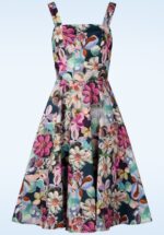“Where flowers bloom, so does she.” De Livia Blossom swing jurk maakt je helemaal klaar voor het zomerseizoen en is bovendien exclusief verkrijgbaar bij Topvintage. Ze heeft een mouwloze, aansluitende top die overloopt in een volle swing rok met handige steekzakken. Uitgevoerd in een soepele en luchtige donkerblauwe katoenmix, voorzien van een schilderachtige bloemenprint in levendige kleuren. Dankzij de lichte stretch zit ze bovendien heerlijk comfortabel. * Swing jurk * Mouwloos * Blinde rits achterzijde * Voorzien van zakken! * Te combineren met een petticoat voor een extra feestelijk effect * Valt bij een lengte van 1,70 m over de knie * Exclusief bij Topvintage verkrijgbaar!