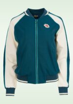 “Bomber cool, retro rule!” Deze speelse bomberjack is een echte blikvanger! Uitgevoerd in een soepele en stretchy, petrolblauwe bio katoenmix en is voorzien van prachtig bloemenborduursel. Dé perfecte mix van fun en retro flair! * Bomber jack * Lange mouwen * Ritssluiting * Voorzien van zakken * Stretchy ribboorden * Lang genoeg om op een normale heupbroek te dragen