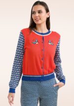 ”She’s giving real retro vibes!” Dit Emma vestje is een uniek exemplaar dat niet mag ontbreken in de garderobe van een vintage loving lady! Ze heeft contrasterende ribboorden, mouwen met een speels patroon en is voorzien van een geborduurde zwaluwen. Ze is uitgevoerd in een super zachte, soepele en stretchy 100% bio katoen die heerlijk draagt. * Ronde halslijn * Lange mouwen * Knopenrij * Lang genoeg om op een normale heupbroek te dragen