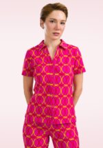 “Wear color like confidence.” Deze blouse springt meteen in het oog met een opvallende grafische print en een levendige felroze kleur. Gemaakt van een soepele, stretchy organische katoenmix die niet alleen heerlijk draagt, maar ook zorgt voor een moeiteloze, flatterende fit. * V-halslijn * Puntig kraagje * Korte mouwen * Knopenrij * Lang genoeg om op een normale heupbroek te dragen