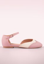 ”Shoe love is true love!” Je kunt niet anders dan verliefd worden op deze schattige platte ballerina’s! Uitgevoerd in lichtroze en ivoorwit imitatie leder met brogue details en een verstelbaar enkelbandje. * Ballerina * Imitatie leder * Verstelbaar enkelbandje * Comfortabel voetbed * Anti-slip zool