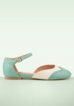 ”Shoe love is true love!” Je kunt niet anders dan verliefd worden op deze schattige platte ballerina’s! Uitgevoerd in mintgroen en ivoorwit imitatie leder met brogue details en een verstelbaar enkelbandje. * Ballerina * Imitatie leder * Verstelbaar enkelbandje * Comfortabel voetbed * Anti-slip zool