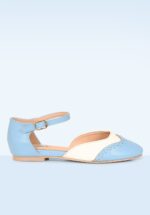 ”Shoe love is true love!” Je kunt niet anders dan verliefd worden op deze schattige platte ballerina’s! Uitgevoerd in babyblauw en crèmekleurig imitatie leder met brogue details en een verstelbaar enkelbandje. * Ballerina * Imitatie leder * Verstelbaar enkelbandje * Comfortabel voetbed * Anti-slip zool