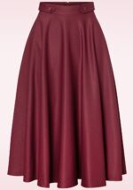 ”Swing your way into winter” met deze 50s Di Di Swing Skirt in Burgundy! Dit fifties pareltje draag je hoog in de taille, vanwaar zij uitloopt in een klassieke, elegante swing rok. De ‘faux’ knoopdetails in de zij vormen niet alleen een speels detail, maar benadrukken je taille ook nog eens extra. Uitgevoerd in een stevige maar soepel vallende, bordeauxrode stof (stretcht amper) die prachtig met je mee beweegt. De winterperiode kan zo mooi zijn, zeker met een rok als Di Di in je kast! 😉 * Full swing rok * ‘Faux’ knoopdetails * Zijwaartse steekzakken * Rits- en haaksluiting achterzijde * Combineer met een van onze petticoats voor een extra feestelijk effect * Valt bij een lengte van 1,70 m over de knie
