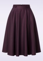 ”Swing your way into winter” met deze 50s Di Di Swing Skirt in Aubergine! Dit fifties pareltje draag je hoog in de taille, vanwaar zij uitloopt in een klassieke, elegante swing rok. De ‘faux’ knoopdetails in de zij vormen niet alleen een speels detail, maar benadrukken je taille ook nog eens extra. Uitgevoerd in een stevige maar soepel vallende, auberginepaarse stof (stretcht amper) die prachtig met je mee beweegt. De winterperiode kan zo mooi zijn, zeker met een rok als Di Di in je kast! 😉 * Full swing rok * ‘Faux’ knoopdetails * Zijwaartse steekzakken * Rits- en haaksluiting achterzijde * Combineer met een van onze petticoats voor een extra feestelijk effect * Valt bij een lengte van 1,70 m over de knie