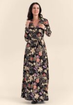 ”Falling for fall… and for Helena!” Op deze prachtige maxi jurk raak je nooit uitgekeken. Want wow… wat een geweldige bloemenprint in warme, herfstachtige kleuren! Helena is uitgevoerd in een superzachte, soepele en stretchy EcoVero viscosemix die heerlijk draagt en bij elke stap sierlijk met je meebeweegt. * Maxi jurk * Revers kraag * Lange mouwen * Knopenreeks * Afneembare striklint, voor een extra ‘snatched’ taille * Reikt bij een lengte van 1,70 m tot boven de enkel * EcoVero viscose