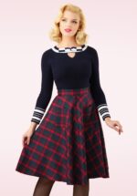 De naam zegt al genoeg… deze Apple Of My Eye Tartan Skirt wordt jouw favoriet! The straw to my berry and the butterflies I feel in my belly 😉 Deze beauty draag je hoog in de taille, vanwaar zij uitloopt in een vrolijke, zwierige swing rok. De twee zakjes aan de voorzijde vormen niet alleen een speels detail, maar zijn ook nog eens super praktisch. Uitgevoerd in een stevig doch soepel vallend stofje (stretcht niet!) met een classy ruitpatroon in donkerblauw en donkerrood waardoor zij heerlijk draagt. Holy moly, me oh my, you’re the apple of my eye! * Swing rok * Opgenaaide zakjes * Blinde rits en knoopsluiting aan de zijkant * Combineer met een petticoat voor een extra feestelijk effect * Onze gorgeous blondine Rachel is 1,72 m * De afgebeelde top is (nog) niet verkrijgbaar in onze shop
