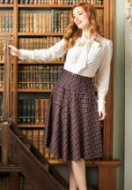 De naam zegt al genoeg… deze Apple Of My Eye Tartan Skirt wordt jouw favoriet! The straw to my berry and the butterflies I feel in my belly 😉 Deze beauty draag je hoog in de taille, vanwaar zij uitloopt in een vrolijke, zwierige swing rok. De twee zakjes aan de voorzijde vormen niet alleen een speels detail, maar zijn ook nog eens super praktisch. Uitgevoerd in een stevig doch soepel vallend stofje (stretcht niet!) met een classy ruitpatroon in bordeauxrood, zwart en wit waardoor zij heerlijk draagt. Holy moly, me oh my, you’re the apple of my eye! * Swing rok * Opgenaaide zakjes * Blinde rits en knoopsluiting aan de zijkant * Combineer met een petticoat voor een extra feestelijk effect * Onze stunning redhead Vanessa Frankenstein is 1,67 m * Gorgeous blogger Vintage Mädchen is 1,68 m