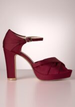 ”Less is more does not apply to shoes!” Deze peeptoe beauties met subtiel plateau en stevige, hoge hak zijn uitgevoerd in een bordeauxrood stofje met de luxe look and feel van satijn. De zachte binnenzool van leder zorgt bovendien voor een aangenaam draagcomfort. * Peeptoe pump * Sateen * Stevige, hoge hak * Subtiel plateau * Verstelbaar enkelbandje * Comfortabele binnenzool van leder * Anti-slip zool