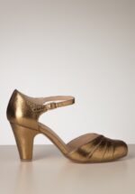 ”I get distracted by shiny things!” Deze feestelijke pumps zijn uitgevoerd in metallic brons imitatieleder, afgewerkt met een sierlijke uitsnede op de wreef en een niet al te hoog, stevig hakje. * Mary Jane stijl pumps * Rond neusje * Verstelbaar bandje * Stevige, niet al te hoge hak * Comfortabele binnenzool van leder * Anti-slip zool