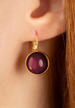 Goldplated Dot oorbellen in aubergine