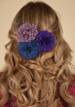 Zeg het met bloemen! In je haar of op je outfit, dat is helemaal aan jou met deze veelzijdige, chiffon haarbloem set in lila, paars en donkerblauw. Geef je jurk, jasje óf kapsel net dat beetje extra ;-). * Set van drie * Chiffon * Platte achterkant * Zilverkleurig alligatorclipje * Nikkelvrij