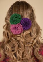 Zeg het met bloemen! In je haar of op je outfit, dat is helemaal aan jou met deze veelzijdige, chiffon haarbloem set in oudroze, bietrood en donkergroen. Geef je jurk, jasje óf kapsel net dat beetje extra ;-). * Set van drie * Chiffon * Platte achterkant * Zilverkleurig alligatorclipje * Nikkelvrij