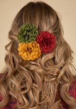 Haarbloemenset in chili, olijfgroen en abrikoos