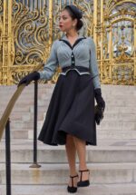 “Effortlessly polished, endlessly charming.” Leane Azure is afkomstig uit de nieuwe collectie en geïnspireerd op de extraordinaire Marie-Louise Carven — een baanbrekende Franse couturière uit de jaren ’40 en ’50. Ze heeft een prachtig geplooid bustegedeelte en een aansluitend lijfje in lichtblauw, afgewerkt met een stevige dubbele kraag en een vrouwelijke V-halslijn. De afneembare riem accentueert je taille prachtig, terwijl de zwierige swingrok uitnodigt tot een kleine twirl. Praktische steekzakken (yes!) en een blinde ritssluiting aan de achterzijde maken haar net zo comfortabel als stijlvol. Uitgevoerd in een stevige maar soepelvallende stofmix met een fijne stretch voor extra draagcomfort. * Swing model * Dubbele puntige kraag * Geplooide buste met decoratieve knopen * Lange mouwen * Blinde rits aan de achterzijde * Afneembare riem, voor een extra ‘snatched’ taille * Voorzien van zakken! * Valt bij een lengte van 1,70 m over de knie