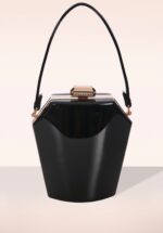 “A coffin-shaped clutch that’s all treat, no trick.” Deze handtas in clutch stijl heeft een goudkleurig frame met klipsluiting en strass voor een echte vintage party look en is uitgevoerd in zwart imitatie lakleder met een shiny finish. Ze wordt bovendien geleverd met een losse schakelketting zodat je haar ook crossbody kunt dragen. * Klipsluiting met strass * Afneembare schakelketting * Kan crossbody gedragen worden * Volledig gevoerd met een paars stofje * Beschermpootjes onderzijde * Groot genoeg voor een (niet al te grote) telefoon, sleutels en je favoriete lippenstift