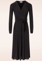 ”Black is a happy colour darling! Deze Julieta jurk neem je probleemloos óveral mee naartoe… ze is namelijk uitgevoerd in een soepel en stretchy, slinky stofje met een lichte glans die licht van gewicht is en niet kreukt. * Midi jurk * Vaste, gevoerde overslag top * Lange mouwen voorzien van elastiek * Afneembaar striklint, voor een extra ‘snatched’ taille * Geen rits of knopen; aantrekken en ready to go! * Reikt bij een lengte van 1,70 m over de knie