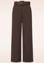 “Tailored to turn heads!” Maak je look compleet met deze verfijnde pantalon in een warme bruine tint. De hoge taille en bijpassende riem accentueren je figuur, terwijl de persnaad en wijde pijpen zorgen voor een moderne, flatterende lijn. Ze is uitgevoerd in een zachte, soepel vallende stofmix met een vleugje viscose voor een luxe touch en optimaal draagcomfort. * Hoge taille * Rits en knoopsluiting * Afneembare riem * Wijde pijpen met vaste omslagjes