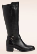 “Sleek black leather, effortless stride… timeless boots built for confidence.” Deze kniehoge laarzen met stretchy schacht zijn uitgevoerd in hoogwaardig zwart leder met een stevige, lage blokhak en een vast gesp detail. * Kniehoge laarzen * Echt leder * Stevige blokhak * Schacht met stretch! * Comfy (Touch-it) voetbed * Rits aan binnenzijde * Anti-slip zool