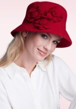 “Bold in red, soft in detail… a cloche that turns nostalgia into style.” Uitgevoerd in een mooie, zachte, lipstickrode wolmix met een rand die naar beneden buigt en bloem applicaties aan de zijkant. * Cloche hoed * Wolmix * Zacht en warm * Verstelbaar d.m.v. koordje binnenzijde
