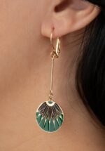 ”Adorn your ears with elegance!” Deze Art Deco Palm Leaf oorbellen zijn; klassiek, sierlijk en adembenemend mooi! Ze zijn uitgevoerd in (antiek) goudkleurig messing en zijn versierd met groene handbeschilderde emaille. Vergeet je haar niet op te steken want deze beauty’s mogen gezien worden! * Messing (antiek goudkleurig metaal) * Handbeschilderd emaille * Hypoallergene hangertjes * Nikkelvrij