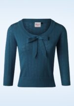 Deze 50s Pointelle Bow Top in Steal Blue is er eentje om verliefd op te worden! Nee, dit is geen illusie… deze prachtige top is een droom die uitkomt! De top heeft een mooie ronde halslijn met een speelse strik en 3/4 mouwtjes, cute! Uitgevoerd in een heerlijk soepele, stretchy, fijngebreide, staalblauwe viscosemix met een klassiek opengewerkt patroon. Een veelzijdige top die niet mag ontbreken in de kast van een echte vintage lady! * Ronde halslijn * Vaste strik * 3/4 mouwtjes * Stretchy ribboorden * Lang genoeg om op een normale heupbroek te dragen