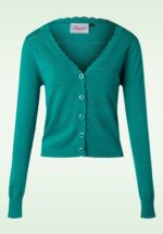 De Pointelle Cardigan in Aqua Blue maakt met iedere outfit een ‘perfect match’! Deze cardigan heeft een geschulpte V-halslijn, lange mouwen en grote glimmende knopen. Uitgevoerd in een dikkere, zachte, fijngebreide, aquablauwe viscosemix met een heerlijke stretch en een opengewerkt patroon voor een mooie aansluitende pasvorm. De combinatiemogelijkheden zijn eindeloos! * V-halslijn * Lange mouwen * Reeks knopen * Boordjes langs de halslijn, mouwen en onderkant