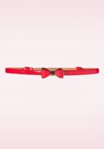 Deze 50s Ocean Avenue Bow Belt is een classy riem in vintage look en een aanvulling op elke vintage outfit. Deze prachtige smalle verstelbare ceintuur is uitgevoerd in lipstickrood ‘faux’ lakleder met een elegant goudkleurig strikje, très chique! Subtiel riempje met een hoge wow-factor en een echte must-have voor alle vintage ladies! * Sluit d.m.v. goudkleurige haaksluiting in de vorm van strikje * Verstelbaar