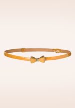 Deze smalle riem is een aanvulling op elke vintage outfit. Uitgevoerd in mosterdgeel imitatie lakleder met een elegant goudkleurig strikje, très chique! Subtiel riempje met een hoge wow-factor en een echte must-have voor alle vintage ladies! * Sluit d.m.v. goudkleurige haaksluiting in de vorm van strikje * Verstelbaar