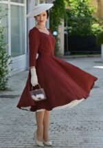 “Blossom in every step!” Voel je vrouwelijk, elegant en helemaal klaar voor het seizoen in deze swing jurk in donker terracotta. De subtiele sweetheart halslijn, 3/4 mouwen en het reliëfbloemenpatroon geven haar een zachte, charmante uitstraling, terwijl de bijpassende riem je taille prachtig accentueert. Uitgevoerd in een stevige maar soepele en stretchy stofmix voor ultiem draagcomfort en een perfecte pasvorm. * Swing jurk * Subtiele sweetheart halslijn * 3/4 mouwen met keyhole * Afneembare riem * Voorzien van zakken! * Blinde ritssluiting aan de achterzijde * Te combineren met een petticoat voor een extra feestelijk effect * Valt bij een lengte van 1,70 m over de knie