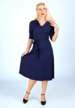 “Effortless elegance in every move.” Deze semi-swing jurk combineert vrouwelijkheid met comfort. Ze heeft een subtiele watervalhalslijn en flatterende 3/4 mouwen die zorgen voor een elegante, sierlijke look. Het afneembare striklint accentueert je taille op stijlvolle wijze, terwijl de stretchy viscosemix heerlijk zacht aanvoelt en mooi met je meebeweegt. Perfect voor elke gelegenheid – van werkdag tot dinerdate. * Semi-swing model * Subtiele waterval halslijn * 3/4 mouwen * Blinde rits aan de zijkant * Afneembaar striklint; voor een extra ‘snatched’ taille * Julia Fiore is 1,70 m: haar accessoires zijn haar eigen vintage treasures * Exclusief bij Topvintage verkrijgbaar