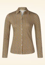 “Soft to wear, fun to flaunt!” Deze blouse heeft een klassiek model met puntige kraag en is veelzijdig, comfortabel én stijlvol – perfect voor elke dag. Ze is uitgevoerd in een soepele, zachte en elastische EcoVero viscosemix in zwart, voorzien van een grafische retroprint in warme bruintinten. * Puntig kraagje * Lange mouwen * Knopenrij * Lang genoeg om op een normale heupbroek te dragen