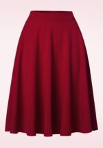 Feestdagen of gewoon een dagje full glamour? Deze 50s Sheila Swing Skirt in Claret Velvet is jouw sidekick! Deze beauty wordt hoog in de taille gedragen en waaiert prachtig uit waardoor je een super vrouwelijk zandloper figuur krijgt, oh la la. Uitgevoerd in een soepel vallende, stretchy, bordeauxrode fluwelen stof die mooi glanst zodra er licht op valt. Niets is zo charmant als een vrouw in glanzend fluweel! * Swing model * Zijwaartse steekzakken * Geen rits of knopen * Elastische taille * Valt net over de knie bij een lengte van 1,70 m