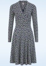 ”Dress your vibe with Sheeva!” Deze retro beauty heeft een aansluitende top met elegante puntig kraagje, speelse knoopjes en lange mouwen. Het afneembare striklintje zorgt voor een leuk accent in de taille vanwaar ze uitloopt in een flatterende semi-swing rok MET handige steekzakjes. Ze is uitgevoerd in een soepele en stretchy, zwarte EcoVero viscosemix voorzien van een grafisch retro printje in verschillende groentinten. * Puntige kraag * Knopenrij * Lange mouwen * Afneembare strikriem, voor een extra ‘snatched’ taille * It has pockets! * Valt bij een lengte van 1,70 m over de knie * Melissa is 1,78 m * Let op; de kleur van het product op de video kan afwijken van de daadwerkelijke kleur van het product