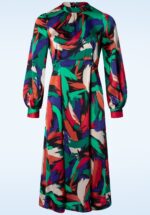 Ze zien groen van jaloezie wanneer jij in deze beauty verschijnt! Uitgevoerd in een soepele, non-stretchy stof met de looks and feel van luxe satijn voorzien van een abstracte print in verschillende kleuren. * Midi jurk * Hoge halslijn * Lange pofmouwen met manchetten * Elastische tailleband * Voorzien van zakken! * Blinde rits en knoopsluiting achterzijde * Reikt bij een lengte van 1,70 m tot halverwege de kuit
