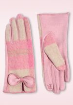 “Blush checks, delicate bow… where subtle charm meets timeless elegance.” Deze warm gevoerde handschoenen zijn uitgevoerd in een subtiel geruit stofje in poederroze en crème, met een schattig strik detail. * Zacht en warm * Volledig gevoerd * Geschikt om je mobiel mee te bedienen