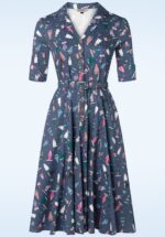 ”Walking in a winter wonderland!” Deze Ski Snow Season swing jurk heeft een elegante V-halslijn, reverskraagje, 3/4 mouwen en loopt uit in een prachtige swing rok, die jou een prachtig vrouwelijk silhouet geeft! Uitgevoerd in een stevige, maar soepele katoenmix (lichte stretch) voorzien van een schattige winterse print. * Swing model * V-halslijn * Reverskraagje * 3/4 mouwtjes met splitjes * Reeks knopen * Afneembare riem * Zijwaartse steekzakken * Valt bij een lengte van 1,70 m tot halverwege de kuit
