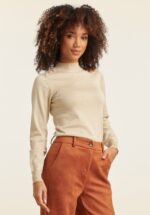”A little glitter goes a long way!” Sierra heeft een ronde halslijn, sierknoopjes bij de schouder en lange mouwen. Ze is uitgevoerd in een fijngebreide, stretchy, zandkleurige viscosemix met een ingewerkte glitterdraad die heerlijk draagt. * Ronde halslijn * Lange mouwen * Stretchy ribboord * Lang genoeg om op een normale heupbroek te dragen