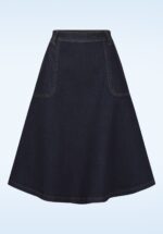 ”A denim dream!” Deze zwierige en flatterende a-lijn rok wordt hoog in de taille gedragen en is uitgevoerd in een stevige, donkerblauwe denim katoenmix met een lichte stretch die een genot is om te dragen. Afgewerkt met bruin stiksel voor die authentieke touch. Je kunt je denim droom uit laten komen met één klik op de knop! 😉 * A-lijn model * Lusjes voor je riem * Steekzakken * Gespdetail aan de achterkant * Rits- en knoopsluiting zijkant * Zakken achterzijde * Valt bij een lengte van 1,70 m over de knie