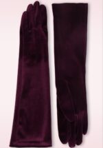 “Elbow-high allure, velvet richness… burgundy gloves for a night to remember.” Deze chique handschoenen reiken tot net onder de elleboog en zijn uitgevoerd in een zacht bordeauxrood stofje met de luxe look and feel van fluweel. * Ellebooglengte * Lichte stretch