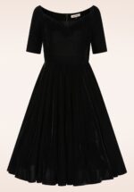 Waan je een classy celebrity Diva in deze onweerstaanbaar swing dress! Dit seizoen hebben onze eigen in-house ontwerpers zich laten inspireren door de iconische stijl van Ava Gardner in de film ‘Barefoot Contessa’. Classy, super vrouwelijk en een tikkeltje sassy. Uitgevoerd in een stevige maar stretchy, high quality, zwarte viscosemix die een genot is om te dragen en gracieus met je meebeweegt. Hollywood of Holland? Het maakt niets uit… jij bent de hoofdrolspeelster zodra je deze stunner aantrekt! * Swing model * Gevoerde top * Diamantvormige halslijn * 3/4 pofmouwtjes met omslagjes * Afneembare roos corsage * Blinde rits achterzijde * Elisabeth (Barinovael) is 1,67 m: haar pumps en accessoires zijn haar eigen treasures