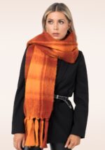 “Checks in glowing tones of orange and red… the scarf that carries the warmth of autumn.” Deze sjaal is uitgevoerd in een luxueuze, zachte stof met een gerafelde rand en een felle ruitjesprint in oranje en rood. Drapeer haar gracieus om je schouders of wikkel haar om je heen tijdens frissere dagen. * Rechthoekig, lang model * Zacht en warm * Kan op verschillende manieren gedragen worden