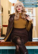 “A statement in motion… ribbed texture meets bold retro greens and blues for a look that’s effortlessly iconic!” Deze jacket stijl blouse is uitgevoerd in een stevige maar stretchy, subtiele ribfluwelen katoenmix voorzien van een grafische retro print in groen- en blauw tinten. * Puntig kraagje * Lange, licht poffende mouwen met manchet * Reeks knopen voorzijde * Met zakken! * Afneembare strikband voor een extra ‘snatched’ taille * Lang genoeg om op een normale heupbroek te dragen