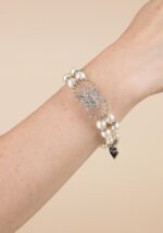 Deze 20s Deco Pearl Bracelet in Ivory is een pronkstuk dat je voor altijd bij je zal dragen! Geïnspireerd op de roaring twenties en uitgevoerd in zilverkleurig metaal, top kwaliteit ‘faux’ parels en fonkelende strass steentjes. Het hartvormige bedeltje maakt het geheel helemaal af. Ga terug in de tijd en maak je Great Gatsby look af met deze oogverblindend mooie armband! * Zilverkleurige metaal * ‘Faux’ parels * Strass * Schakelsluiting * Nikkelvrij * Combineer dit pronkstuk met de bijbehorende oorbellen