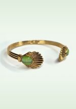 Art-deco inspired maar toch helemaal van nu! Deze armband is uitgevoerd in antiek goudkleurig messing met een dubbele coating en een zachtgroene, glazen steen. * Antiek goudkleurig messing * Duurzame vacuüm PVD plating * Verstelbaar * Nikkelvrij * Cadeauverpakking van gerecycled plastic.