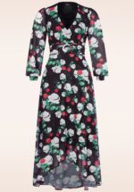 “She wore roses like a warning… soft, but never simple!” Deze betoverende maxi jurk is ontworpen door onze eigen in-house ontwerpers en is een ode aan tijdloze elegantie, geïnspireerd door de iconische stijl van Ava Gardner en haar ongedwongen charme in de film ‘Barefoot Contessa’ uit 1954. Ze heeft een elegante V-halslijn, lange doorschijnende mouwen en een geplooide tailleband vanwaar ze uitloopt in een flowy overslag maxi rok. Ze is uitgevoerd in een soepele en luchtige zwarte stof (stretcht niet!) voorzien van een bloemenprint in groen, crème en rood. * Maxi jurk * Gevoerde top met V-halslijn en plooitjes bij de buste * Bra strap holders zodat je bh bandjes niet gaan schuiven * Lange, licht doorschijnende mouwen met manchetten * Geplooide tailleband met vast riem detail * Gevoerde rok met overslag * Blinde rits in de zijnaad * Gorgeous Julia Fiore (Fiorevanil) is 1,70 m; haar accessoires zijn haar eigen vintage treasures * Let op; de kleur van het product op de video kan afwijken van de daadwerkelijke kleur van het product